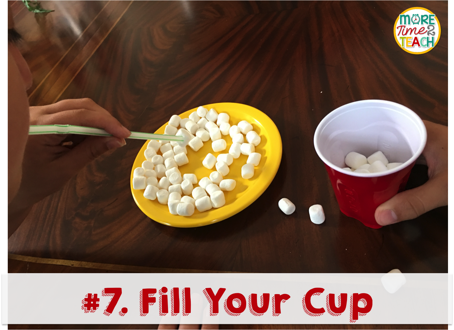 7. Fill Your Cup- Since my students love using marshmallows and straws for games, here’s another one we came up with…